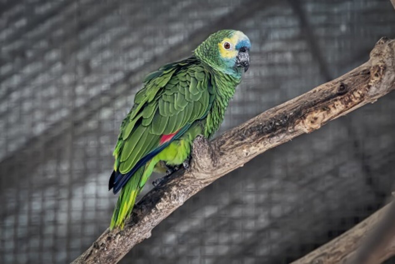 Es de color verde, frente y bridas azuladas, garganta, mejilla y píleo amarillos. El borde de las alas es rojo o amarillo, con las coberteras alares rojas. Ojos de color naranja. El pico de color negruzco y las patas grises. Los ejemplares jóvenes presentan una coloración distinta a la de los adultos; la cabeza es de color verde, azulado y amarillo pálido. El borde superior del ala y el vértice flexor de la misma son de una tonalidad más pálida. La pupila es de color gris oscuro en las crías hasta que alcanzan el año de edad. En esta especie el sexo de los ejemplares no se distingue a simple vista. Hay autores que afirman que los machos son más grandes que las hembras o que el tamaño del pico y la cabeza entre el macho y la hembra es diferente, pero estas distinciones son totalmente subjetivas y necesitan de ojos expertos para poder acertar con un mínimo de garantías.