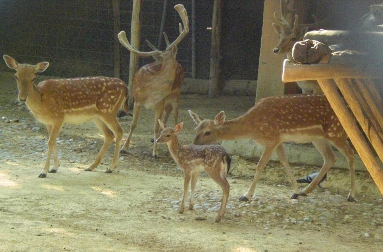 Uno de los últimos nacimientos ocurridos esta primavera en el Zoo ha sido el de un pequeño gamo (Dama dama). Su tamaño unido al pelaje de verano del que ahora disfrutan estos cérvidos, llenos de motitas blancas, es la atracción de cuantos nos visitan. La expresión de los niños que visitan el Zoo siempre es la misma "mira, Bambi" . El nacimiento ocurrió el pasado sábado 14 de junio siendo un parto normal. La cría es amamantada por su madre y arropada por todo el grupo de adultos, entre los cuales se le ve aun más pequeño. Estas elegantes criaturas son originarias de la región mediterránea (sur de Europa, norte de África y Asia Menor). Están actualmente introducidos en toda Europa, son herbívoros y habitan en los bosques caducifolios y mixtos lluviosos. En esta época sus cuernas aplanadas se encuentran en su máximo apogeo estando cubiertas por una fina capa de pelillos que se asemeja al terciopelo, la cual se caerá poco a poco, desapareciendo en cuanto la cuerna llegue a su desarrollo total, que suele ser en Julio. Para la época de la berrea tendrán una gran cornamenta que es cuando dejan oír su ronca voz y luchan por las hembras. Habitualmente son animales silenciosos. No se trata de un animal en peligro de extinción pero, no por ello deja de resultar un disfrute el contemplarlos.